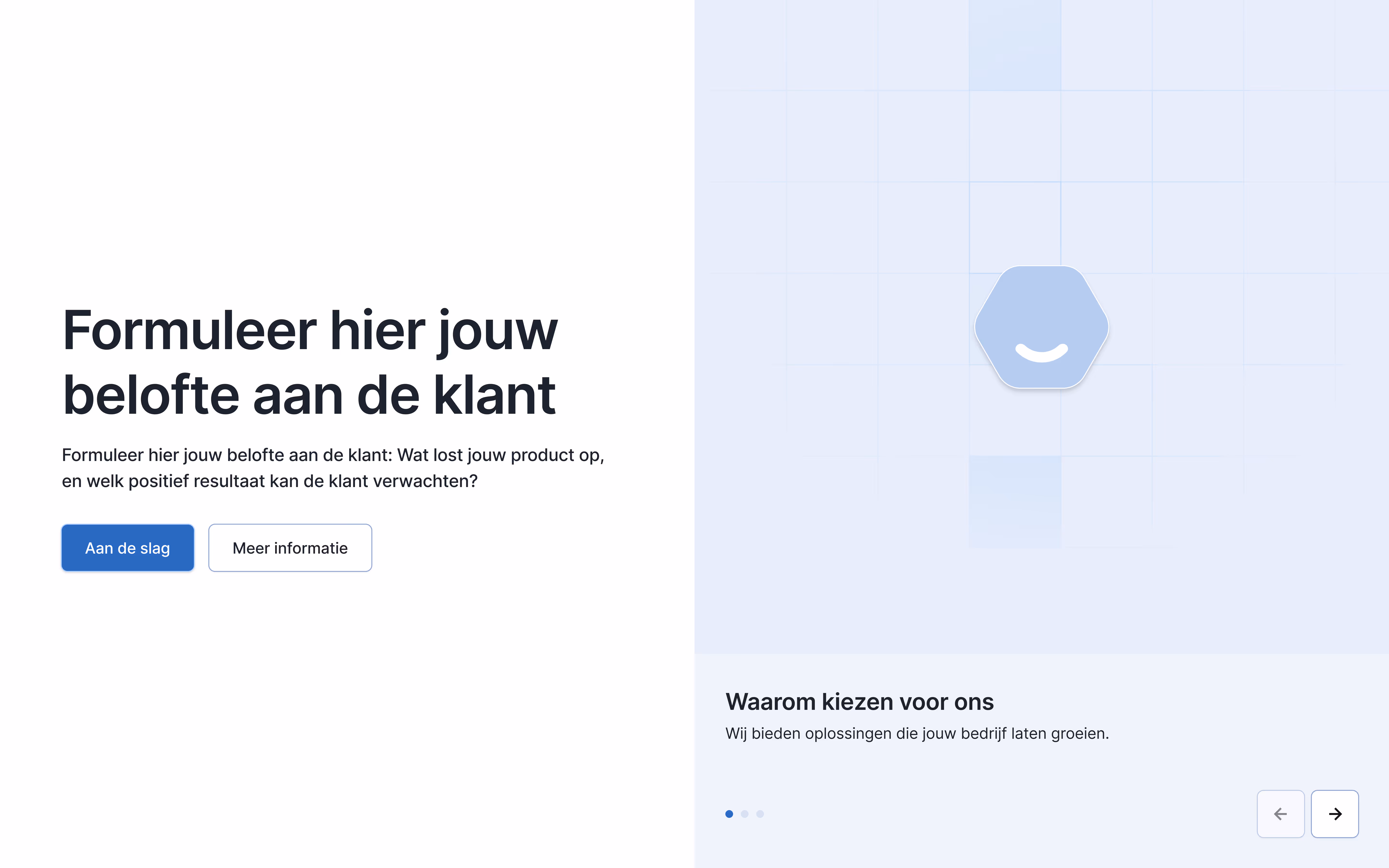 {"type":"@webflow/XscpData","payload":{"nodes":[{"_id":"f9dbadc2-ef7e-d6e3-59f7-bb5a13b1ff8e","type":"Block","tag":"header","classes":["91837a78-2caf-f5da-7c0c-a9ac44883495"],"children":["92535b8d-d966-80c1-3b8b-16edf830c809"],"data":{"text":false,"tag":"header","devlink":{"runtimeProps":{},"slot":""},"displayName":"","attr":{"id":""},"xattr":[],"search":{"exclude":false},"visibility":{"conditions":[]}}},{"_id":"92535b8d-d966-80c1-3b8b-16edf830c809","type":"Block","tag":"div","classes":["91837a78-2caf-f5da-7c0c-a9ac44883496"],"children":["7d5e41e8-c7e9-d34f-345b-4ef9299861e1","a981f963-7225-1f29-654b-dc68ef092597"],"data":{"text":false,"tag":"div","devlink":{"runtimeProps":{},"slot":""},"displayName":"","attr":{"id":""},"xattr":[],"search":{"exclude":false},"visibility":{"conditions":[]}}},{"_id":"7d5e41e8-c7e9-d34f-345b-4ef9299861e1","type":"Block","tag":"div","classes":["91837a78-2caf-f5da-7c0c-a9ac44883497"],"children":["5fcfa6f9-0700-38ad-20b5-f65ef468618a","0b273d6e-451c-f585-cc40-9c5963792d1e","9689bc9a-ae95-ecf6-a822-4797d2b08bfa"],"data":{"text":false,"tag":"div","devlink":{"runtimeProps":{},"slot":""},"displayName":"","attr":{"id":""},"xattr":[],"search":{"exclude":false},"visibility":{"conditions":[]},"style":{"base":{"main":{"noPseudo":{"gridColumnEnd":"span 1","gridColumnStart":"span 1","gridRowEnd":"span 1","gridRowStart":"span 1","justifySelf":"end"}},"medium":{"noPseudo":{"justifySelf":"start"}}}}}},{"_id":"5fcfa6f9-0700-38ad-20b5-f65ef468618a","type":"Block","tag":"div","classes":["2b7ce42a-68c2-b493-7ffe-3975868fa804","2adac28d-b1cd-2814-fd2f-d06e92612f51"],"children":["4889a41e-d3e9-dca2-b7b2-7ee3059ca739"],"data":{"text":false,"tag":"div","devlink":{"runtimeProps":{},"slot":""},"displayName":"","attr":{"id":""},"xattr":[],"search":{"exclude":false},"visibility":{"conditions":[]}}},{"_id":"4889a41e-d3e9-dca2-b7b2-7ee3059ca739","type":"Heading","tag":"h1","classes":["9535d49b-3ebd-0252-46cd-7a6a8a2324f6"],"children":["3d0bb4fa-072b-1e36-8c4e-a6a6a22edbab"],"data":{"tag":"h1","devlink":{"runtimeProps":{},"slot":""},"displayName":"","attr":{"id":""},"xattr":[],"search":{"exclude":false},"visibility":{"conditions":[]}}},{"_id":"3d0bb4fa-072b-1e36-8c4e-a6a6a22edbab","text":true,"v":"Gebruik deze titel om een specifieke groep aan te spreken"},{"_id":"0b273d6e-451c-f585-cc40-9c5963792d1e","type":"Paragraph","tag":"p","classes":["d3b87ce9-69ee-da92-9e80-64b3bc2cc5a5"],"children":["e870b920-2f14-c22d-62a3-d8cfc6548e8a"],"data":{"devlink":{"runtimeProps":{},"slot":""},"displayName":"","attr":{"id":""},"xattr":[],"search":{"exclude":false},"visibility":{"conditions":[]}}},{"_id":"e870b920-2f14-c22d-62a3-d8cfc6548e8a","text":true,"v":"Geef binnen 3 seconden antwoord op: Wat voor bedrijf ben je? Voor wie? Welk probleem los je op?"},{"_id":"9689bc9a-ae95-ecf6-a822-4797d2b08bfa","type":"Block","tag":"div","classes":["ce352128-35a6-8b6a-af9d-6543931881a5","2adac28d-b1cd-2814-fd2f-d06e92612f6e"],"children":["eefb8ce5-a9b5-a368-1c88-1a77349a7671"],"data":{"text":false,"tag":"div","devlink":{"runtimeProps":{},"slot":""},"displayName":"","attr":{"id":""},"xattr":[],"search":{"exclude":false},"visibility":{"conditions":[]}}},{"_id":"eefb8ce5-a9b5-a368-1c88-1a77349a7671","type":"Block","tag":"div","classes":["7a430290-1e11-fb0a-7a60-f535b0e8c7c4"],"children":["b7ef0964-a092-558c-3c61-eb9ea9a8de8b","3760d2a5-efc7-22bc-864f-38e31e3f6bac"],"data":{"text":false,"tag":"div","devlink":{"runtimeProps":{},"slot":""},"displayName":"","attr":{"id":""},"xattr":[],"search":{"exclude":false},"visibility":{"conditions":[]}}},{"_id":"b7ef0964-a092-558c-3c61-eb9ea9a8de8b","type":"Link","tag":"a","classes":["7a430290-1e11-fb0a-7a60-f535b0e8c7ab"],"children":["ecbfb13a-f78a-6228-5060-bf4583e141ee"],"data":{"button":true,"block":"","link":{"mode":"external","url":"#"},"eventIds":[],"attr":{"id":""},"devlink":{"runtimeProps":{},"slot":""},"displayName":"","xattr":[],"search":{"exclude":false},"visibility":{"conditions":[]}}},{"_id":"ecbfb13a-f78a-6228-5060-bf4583e141ee","text":true,"v":"Start"},{"_id":"3760d2a5-efc7-22bc-864f-38e31e3f6bac","type":"Link","tag":"a","classes":["7a430290-1e11-fb0a-7a60-f535b0e8c7ab","7a430290-1e11-fb0a-7a60-f535b0e8c7fe"],"children":["52d1ce64-9522-1542-c7f4-8e1f957284e6"],"data":{"button":true,"block":"","link":{"mode":"external","url":"#"},"eventIds":[],"attr":{"id":""},"devlink":{"runtimeProps":{},"slot":""},"displayName":"","xattr":[],"search":{"exclude":false},"visibility":{"conditions":[]}}},{"_id":"52d1ce64-9522-1542-c7f4-8e1f957284e6","text":true,"v":"Meer"},{"_id":"a981f963-7225-1f29-654b-dc68ef092597","type":"SliderWrapper","tag":"div","classes":["91837a78-2caf-f5da-7c0c-a9ac44883498"],"children":["98182a2a-2ede-b845-1c5d-adcd6962d76b","5b4e41f9-79ec-39af-acef-ba7f55a9fa1c","01e8cb35-7d98-4d22-688c-0820a6f0483c","c464d617-115f-3a8a-97e9-083a5487a1f8"],"data":{"slider":{"animation":"slide","easing":"ease","duration":500,"infinite":true,"disableSwipe":false,"autoplay":true,"delay":4000,"autoMax":0,"hideArrows":false,"navRound":true,"navNumbers":false,"navShadow":false,"navInvert":true,"navSpacing":3,"iconArrows":true,"type":"wrapper"},"devlink":{"runtimeProps":{},"slot":""},"displayName":"","attr":{"id":""},"xattr":[],"search":{"exclude":false},"visibility":{"conditions":[]},"style":{"base":{"main":{"noPseudo":{"gridColumnEnd":"span 1","gridColumnStart":"span 1","gridRowEnd":"span 1","gridRowStart":"span 1"}}}}}},{"_id":"98182a2a-2ede-b845-1c5d-adcd6962d76b","type":"SliderMask","tag":"div","classes":["91837a78-2caf-f5da-7c0c-a9ac44883499"],"children":["16316923-5501-1b93-6a41-211a52c292ae","1c83564d-1aee-6b74-9347-1e2233d81dce","fe0ab3b4-7e07-d714-c577-a5f0b2600a8f"],"data":{"devlink":{"runtimeProps":{},"slot":""},"displayName":"","attr":{"id":""},"xattr":[],"search":{"exclude":false},"visibility":{"conditions":[]},"slider":{"type":"slides"}}},{"_id":"16316923-5501-1b93-6a41-211a52c292ae","type":"SliderSlide","tag":"div","classes":["91837a78-2caf-f5da-7c0c-a9ac4488349a"],"c
