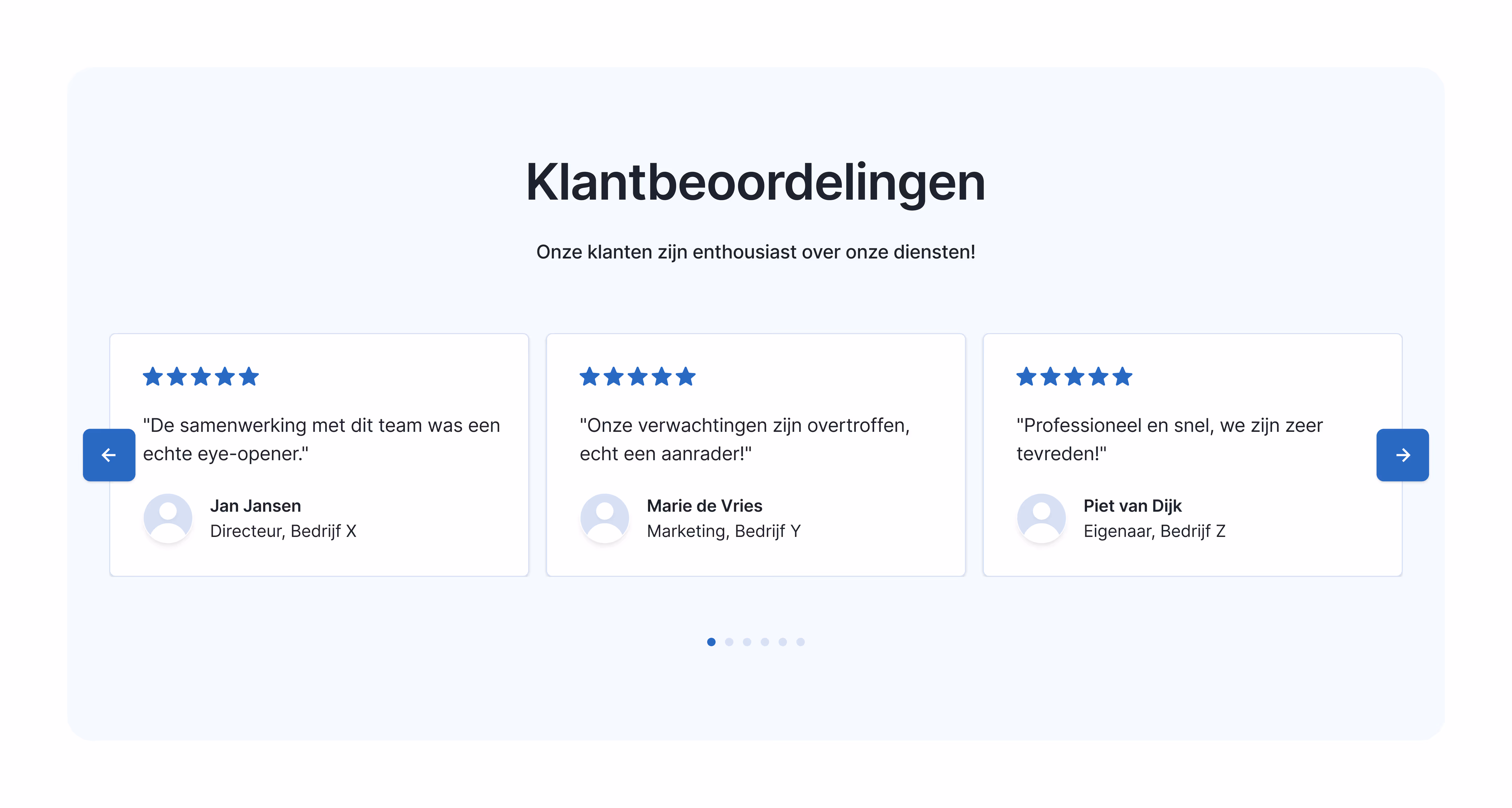 {"type":"@webflow/XscpData","payload":{"nodes":[{"_id":"43e8be6c-30a0-fc9d-4c72-84ae9308dcde","type":"Block","tag":"section","classes":["f6218334-be5b-e98d-b8f0-4bedc2591797"],"children":["54a7ec98-9e02-c2c5-f5eb-972ad06bb85d"],"data":{"text":false,"tag":"section","devlink":{"runtimeProps":{},"slot":""},"displayName":"","attr":{"id":""},"xattr":[],"search":{"exclude":false},"visibility":{"conditions":[]}}},{"_id":"54a7ec98-9e02-c2c5-f5eb-972ad06bb85d","type":"Block","tag":"div","classes":["62366dc3-2432-a5d1-67e0-085e73aa474a"],"children":["a3f99245-446f-2490-0251-15d25bafe29d"],"data":{"text":false,"tag":"div","devlink":{"runtimeProps":{},"slot":""},"displayName":"","attr":{"id":""},"xattr":[],"search":{"exclude":false},"visibility":{"conditions":[]}}},{"_id":"a3f99245-446f-2490-0251-15d25bafe29d","type":"Block","tag":"div","classes":["b0934d9a-875a-bb42-0630-12090a77fc5b"],"children":["0ee62fd4-e2e1-a361-8794-35892b26286e"],"data":{"text":false,"tag":"div","devlink":{"runtimeProps":{},"slot":""},"displayName":"","attr":{"id":""},"xattr":[],"search":{"exclude":false},"visibility":{"conditions":[]}}},{"_id":"0ee62fd4-e2e1-a361-8794-35892b26286e","type":"Block","tag":"div","classes":["47e53913-eb45-d5ea-b09a-1fceda151968"],"children":["bfa0b382-790b-cd9c-5f6b-39f2cbd64571"],"data":{"text":false,"tag":"div","devlink":{"runtimeProps":{},"slot":""},"displayName":"","attr":{"id":""},"xattr":[],"search":{"exclude":false},"visibility":{"conditions":[]}}},{"_id":"bfa0b382-790b-cd9c-5f6b-39f2cbd64571","type":"Block","tag":"div","classes":["f6218334-be5b-e98d-b8f0-4bedc259179b"],"children":["b9b50926-3837-b6fe-f7af-9104eeaa6232"],"data":{"text":false,"tag":"div","devlink":{"runtimeProps":{},"slot":""},"displayName":"","attr":{"id":""},"xattr":[],"search":{"exclude":false},"visibility":{"conditions":[]}}},{"_id":"b9b50926-3837-b6fe-f7af-9104eeaa6232","type":"Block","tag":"div","classes":["f6218334-be5b-e98d-b8f0-4bedc259179d"],"children":["1d8a4e07-1b96-b647-4112-9e0856b9896c","37beaf6f-e0e0-5c3c-e4a2-acc39c074a20"],"data":{"text":false,"tag":"div","devlink":{"runtimeProps":{},"slot":""},"displayName":"","attr":{"id":""},"xattr":[],"search":{"exclude":false},"visibility":{"conditions":[]}}},{"_id":"1d8a4e07-1b96-b647-4112-9e0856b9896c","type":"Block","tag":"div","classes":["f6218334-be5b-e98d-b8f0-4bedc2591799"],"children":["e7bd92b6-6253-fcbb-6388-00db47222fdd"],"data":{"text":false,"tag":"div","devlink":{"runtimeProps":{},"slot":""},"displayName":"","attr":{"id":""},"xattr":[],"search":{"exclude":false},"visibility":{"conditions":[]}}},{"_id":"e7bd92b6-6253-fcbb-6388-00db47222fdd","type":"Heading","tag":"h2","classes":["f6218334-be5b-e98d-b8f0-4bedc259174b"],"children":["d971c040-e1d8-ced4-7882-e5ee21d48270"],"data":{"tag":"h2","devlink":{"runtimeProps":{},"slot":""},"displayName":"","attr":{"id":""},"xattr":[],"search":{"exclude":false},"visibility":{"conditions":[]}}},{"_id":"d971c040-e1d8-ced4-7882-e5ee21d48270","text":true,"v":"Laat bedrijven van eerdere samenwerkingen zien"},{"_id":"37beaf6f-e0e0-5c3c-e4a2-acc39c074a20","type":"Block","tag":"div","classes":["f6218334-be5b-e98d-b8f0-4bedc259179c"],"children":["f4f38f66-430d-a62f-18b1-6f3c1166a6dc","d3ffd5d4-c786-197b-6dc1-91cfeac9165a","6dfc0798-ec31-c9b1-1523-59531589b1e6","a4739570-3fdd-35ef-e0e1-12fff0befbe4","9794708f-b974-d5fc-32fb-de9941ef72ec"],"data":{"text":false,"tag":"div","devlink":{"runtimeProps":{},"slot":""},"displayName":"","attr":{"id":""},"xattr":[],"search":{"exclude":false},"visibility":{"conditions":[]}}},{"_id":"f4f38f66-430d-a62f-18b1-6f3c1166a6dc","type":"Block","tag":"div","classes":["f6218334-be5b-e98d-b8f0-4bedc259179a"],"children":["6b3d39bf-f76b-0cd1-c3a3-9b46ad967010"],"data":{"text":false,"tag":"div","devlink":{"runtimeProps":{},"slot":""},"displayName":"","attr":{"id":""},"xattr":[],"search":{"exclude":false},"visibility":{"conditions":[]},"style":{"base":{"main":{"noPseudo":{"justifySelf":"center"}}}}}},{"_id":"6b3d39bf-f76b-0cd1-c3a3-9b46ad967010","type":"Image","tag":"img","classes":["f6218334-be5b-e98d-b8f0-4bedc2591798"],"children":[],"data":{"img":{"id":"67f7c25128f62b90adc6cb21"},"srcsetDisabled":false,"attr":{"width":"auto","height":"auto","alt":"__wf_reserved_inherit","src":"https://cdn.prod.website-files.com/67f6967582484ddf27426a49/67f7c25128f62b90adc6cb21_logo-webflow.svg","loading":"lazy","id":""},"sizes":[],"devlink":{"runtimeProps":{},"slot":""},"displayName":"","xattr":[],"search":{"exclude":false},"visibility":{"conditions":[]}}},{"_id":"d3ffd5d4-c786-197b-6dc1-91cfeac9165a","type":"Block","tag":"div","classes":["f6218334-be5b-e98d-b8f0-4bedc259179a"],"children":["98186729-6838-dbba-9dc3-32891e402b1f"],"data":{"text":false,"tag":"div","devlink":{"runtimeProps":{},"slot":""},"displayName":"","attr":{"id":""},"xattr":[],"search":{"exclude":false},"visibility":{"conditions":[]}}},{"_id":"98186729-6838-dbba-9dc3-32891e402b1f","type":"Image","tag":"img","classes":["f6218334-be5b-e98d-b8f0-4bedc2591798"],"children":[],"data":{"img":{"id":"67f6967582484ddf27426a96"},"srcsetDisabled":false,"attr":{"width":"auto","height":"auto","alt":"__wf_reserved_inherit","src":"https://cdn.prod.website-files.com/67f6967582484ddf27426a49/67f6967582484ddf27426a96_logo-relume.svg","loading":"lazy","id":""},"sizes":[],"devlink":{"runtimeProps":{},"slot":""},"displayName":"","xattr":[],"search":{"exclude":false},"visibility":{"conditions":[]}}},{"_id":"6dfc0798-ec31-c9b1-1523-59531589b1e6","type":"Block","tag":"div","classes":["f6218334-be5b-e98d-b8f0-4bedc259179a"],"children":["27248433-1cf7-e643-ca22-845ec3870af5"],"data":{"text":false,"tag":"div","devlink":{"runtimeProps":{},"slot":""},"displayName":"","attr":{"id":""},"xattr":[],"search":{"exclude":false},"visibility":{"conditions":[]}}},{"_id":"27248433-1cf7-e643-ca22-845ec3870af5","type":"Image","tag":"img","classes":["f6218334-be5b-e98d-b8f0-4bedc2591798"],"children":[],"data":{"img":{"id":"67f7c25128f62b90adc6cb21"},"srcsetDisabled":false,"attr":{"width":"auto","