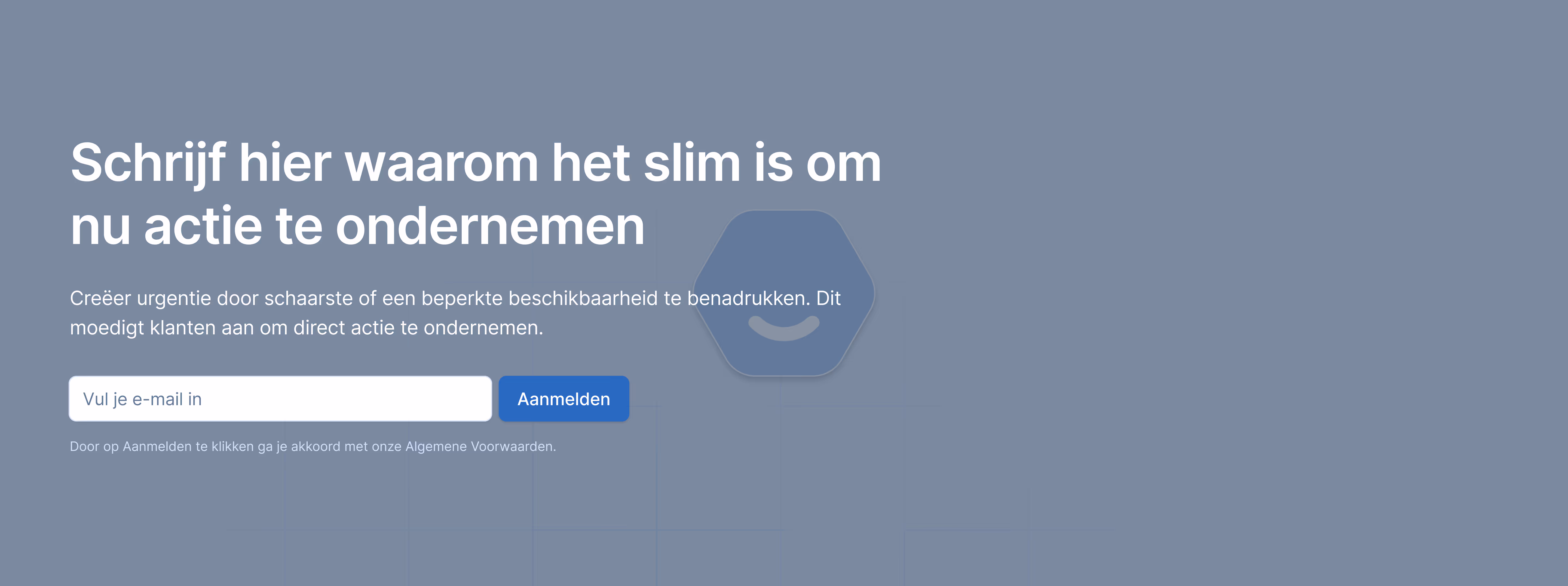 {"type":"@webflow/XscpData","payload":{"nodes":[{"_id":"33e74ce3-b3a4-e41c-6007-1dee47ac618b","type":"Block","tag":"section","classes":["0c330f21-c3f2-046b-3372-7359ec84c83a","0c330f21-c3f2-046b-3372-7359ec84c848"],"children":["4ab30c1e-0a27-d7eb-348c-1782e5cef65d","790708e5-0a45-dc1e-2844-8c89e2b74b23"],"data":{"text":false,"tag":"section","devlink":{"runtimeProps":{},"slot":""},"displayName":"","attr":{"id":""},"xattr":[],"search":{"exclude":false},"visibility":{"conditions":[]}}},{"_id":"4ab30c1e-0a27-d7eb-348c-1782e5cef65d","type":"Block","tag":"div","classes":["62366dc3-2432-a5d1-67e0-085e73aa474a"],"children":["240de0a8-1a21-7e4e-9776-e0557150628f"],"data":{"text":false,"tag":"div","devlink":{"runtimeProps":{},"slot":""},"displayName":"","attr":{"id":""},"xattr":[],"search":{"exclude":false},"visibility":{"conditions":[]}}},{"_id":"240de0a8-1a21-7e4e-9776-e0557150628f","type":"Block","tag":"div","classes":["b0934d9a-875a-bb42-0630-12090a77fc5b"],"children":["afbeca35-087a-cfc4-3a87-322f8715cbe5"],"data":{"text":false,"tag":"div","devlink":{"runtimeProps":{},"slot":""},"displayName":"","attr":{"id":""},"xattr":[],"search":{"exclude":false},"visibility":{"conditions":[]}}},{"_id":"afbeca35-087a-cfc4-3a87-322f8715cbe5","type":"Block","tag":"div","classes":["47e53913-eb45-d5ea-b09a-1fceda151969"],"children":["012a9ae1-a7f4-8052-5a00-a796194642d1"],"data":{"text":false,"tag":"div","devlink":{"runtimeProps":{},"slot":""},"displayName":"","attr":{"id":""},"xattr":[],"search":{"exclude":false},"visibility":{"conditions":[]}}},{"_id":"012a9ae1-a7f4-8052-5a00-a796194642d1","type":"Block","tag":"div","classes":["71f3b9b5-d984-7344-084f-d2023dd9a33c"],"children":["6ac03205-d60a-96c8-7d8c-c8bd87b539d4"],"data":{"text":false,"tag":"div","devlink":{"runtimeProps":{},"slot":""},"displayName":"","attr":{"id":""},"xattr":[],"search":{"exclude":false},"visibility":{"conditions":[]}}},{"_id":"6ac03205-d60a-96c8-7d8c-c8bd87b539d4","type":"Block","tag":"div","classes":["b0934d9a-875a-bb42-0630-12090a77fc7c"],"children":["2102beff-4d54-ffe9-e28f-c4c7330c0962","0797f204-dc9a-96a6-dabd-89436f163d7c","88bdb847-1f83-bcc6-6c2a-07ef8b9776ea"],"data":{"text":false,"tag":"div","devlink":{"runtimeProps":{},"slot":""},"displayName":"","attr":{"id":""},"xattr":[],"search":{"exclude":false},"visibility":{"conditions":[]}}},{"_id":"2102beff-4d54-ffe9-e28f-c4c7330c0962","type":"Block","tag":"div","classes":["2b7ce42a-68c2-b493-7ffe-3975868fa804","2adac28d-b1cd-2814-fd2f-d06e92612f51"],"children":["6e094ed1-4e00-c33a-edf8-c398a3e61d63"],"data":{"text":false,"tag":"div","devlink":{"runtimeProps":{},"slot":""},"displayName":"","attr":{"id":""},"xattr":[],"search":{"exclude":false},"visibility":{"conditions":[]}}},{"_id":"6e094ed1-4e00-c33a-edf8-c398a3e61d63","type":"Heading","tag":"h2","classes":["4ea3d07d-e5b8-d576-7011-02f2879aa48e"],"children":["34cc689c-0cea-ee4d-8728-e04a99bfdace"],"data":{"tag":"h2","devlink":{"runtimeProps":{},"slot":""},"displayName":"","attr":{"id":""},"xattr":[],"search":{"exclude":false},"visibility":{"conditions":[]}}},{"_id":"34cc689c-0cea-ee4d-8728-e04a99bfdace","text":true,"v":"Schrijf hier waarom het slim is om nu actie te ondernemen"},{"_id":"0797f204-dc9a-96a6-dabd-89436f163d7c","type":"Paragraph","tag":"p","classes":["d3b87ce9-69ee-da92-9e80-64b3bc2cc5a5"],"children":["0a22cc2f-d029-045f-9d37-8b92a859b7c1"],"data":{"devlink":{"runtimeProps":{},"slot":""},"displayName":"","attr":{"id":""},"xattr":[],"search":{"exclude":false},"visibility":{"conditions":[]}}},{"_id":"0a22cc2f-d029-045f-9d37-8b92a859b7c1","text":true,"v":"Creëer urgentie door schaarste of een beperkte beschikbaarheid te benadrukken. Dit moedigt klanten aan om direct actie te ondernemen."},{"_id":"88bdb847-1f83-bcc6-6c2a-07ef8b9776ea","type":"Block","tag":"div","classes":["ce352128-35a6-8b6a-af9d-6543931881a5","2adac28d-b1cd-2814-fd2f-d06e92612f6e"],"children":["84ff8ede-227d-600a-10d0-2f84ae652e18"],"data":{"text":false,"tag":"div","devlink":{"runtimeProps":{},"slot":""},"displayName":"","attr":{"id":""},"xattr":[],"search":{"exclude":false},"visibility":{"conditions":[]}}},{"_id":"84ff8ede-227d-600a-10d0-2f84ae652e18","type":"Block","tag":"div","classes":["7a430290-1e11-fb0a-7a60-f535b0e8c7c4"],"children":["983f8a71-6a97-8812-0721-8107de7c9565","32e644fe-3164-6e11-2350-4d62798c103a"],"data":{"text":false,"tag":"div","devlink":{"runtimeProps":{},"slot":""},"displayName":"","attr":{"id":""},"xattr":[],"search":{"exclude":false},"visibility":{"conditions":[]}}},{"_id":"983f8a71-6a97-8812-0721-8107de7c9565","type":"Link","tag":"a","classes":["62366dc3-2432-a5d1-67e0-085e73aa4740","62366dc3-2432-a5d1-67e0-085e73aa4751"],"children":["daf70ea2-121d-88ad-7ea5-d3c2add1bc6d"],"data":{"button":true,"block":"","link":{"mode":"external","url":"#"},"eventIds":[],"attr":{"id":""},"devlink":{"runtimeProps":{},"slot":""},"displayName":"","xattr":[],"search":{"exclude":false},"visibility":{"conditions":[]}}},{"_id":"daf70ea2-121d-88ad-7ea5-d3c2add1bc6d","text":true,"v":"Actie"},{"_id":"32e644fe-3164-6e11-2350-4d62798c103a","type":"Link","tag":"a","classes":["62366dc3-2432-a5d1-67e0-085e73aa4740","62366dc3-2432-a5d1-67e0-085e73aa4750","62366dc3-2432-a5d1-67e0-085e73aa4753"],"children":["213eb352-8a6c-65e1-d3a7-4afc394aa705"],"data":{"button":true,"block":"","link":{"mode":"external","url":"#"},"eventIds":[],"attr":{"id":""},"devlink":{"runtimeProps":{},"slot":""},"displayName":"","xattr":[],"search":{"exclude":false},"visibility":{"conditions":[]}}},{"_id":"213eb352-8a6c-65e1-d3a7-4afc394aa705","text":true,"v":"Aanmelden"},{"_id":"790708e5-0a45-dc1e-2844-8c89e2b74b23","type":"Block","tag":"div","classes":["71f3b9b5-d984-7344-084f-d2023dd9a33d"],"children":["267136bf-2618-d3ba-d368-98dc01241fa9","b275d3fa-bb7d-be4c-eb36-f51540b6a297"],"data":{"text":false,"tag":"div","devlink":{"runtimeProps":{},"slot":""},"displayName":"","attr":{"id":""},"xattr":[],"search":{"exclude":false},"visibility":{"conditions":[]}}},{"_id":"267136bf-2618-d3ba-d36