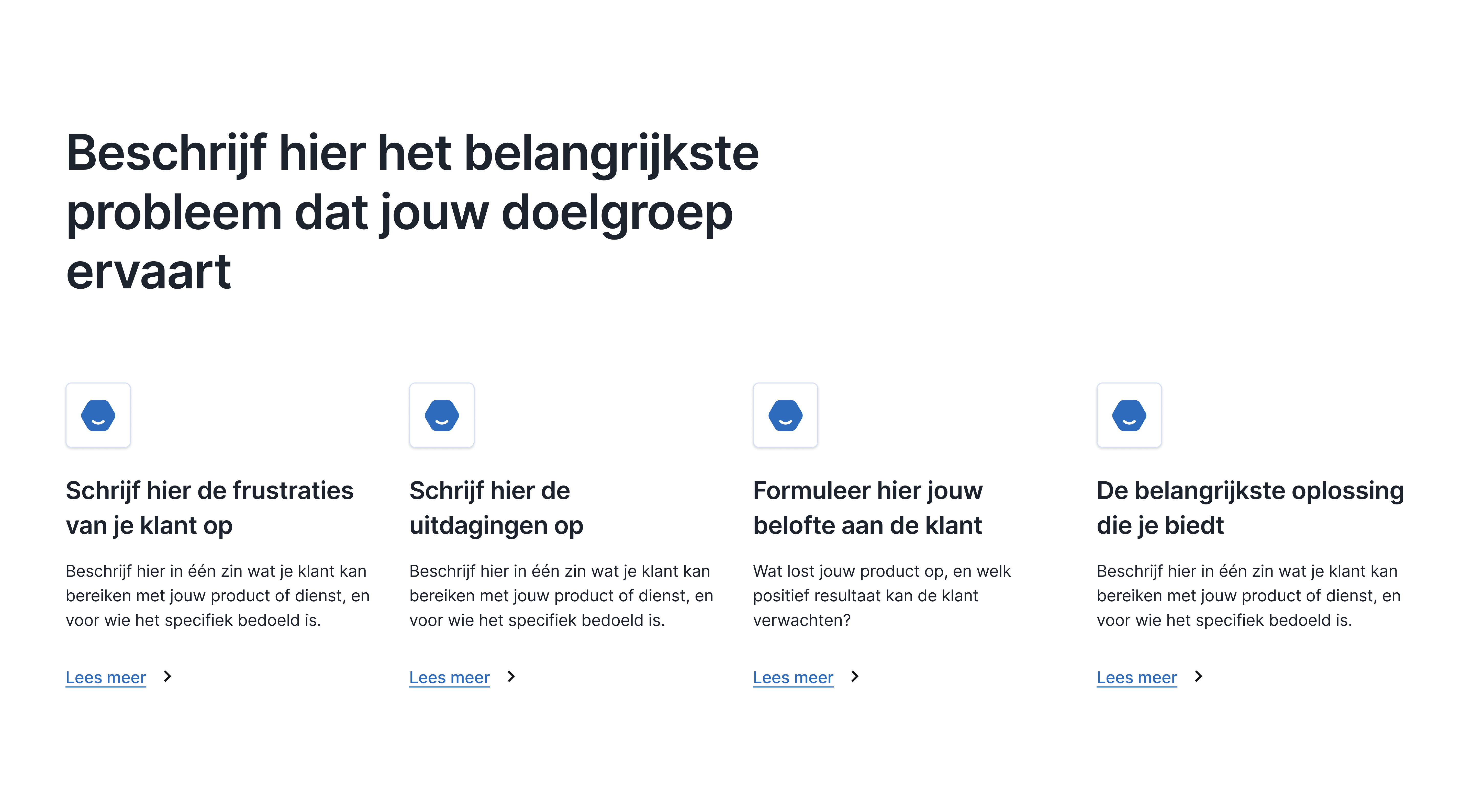 {"type":"@webflow/XscpData","payload":{"nodes":[{"_id":"3eff136c-cd6c-ce04-93a1-e21706273bbb","type":"Block","tag":"section","classes":["6ef4abbe-b877-5495-2b8a-bdb7755bef51"],"children":["f597cb04-2d59-9486-f79f-ac92e6ae82b3"],"data":{"text":false,"tag":"section","devlink":{"runtimeProps":{},"slot":""},"displayName":"","attr":{"id":""},"xattr":[],"search":{"exclude":false},"visibility":{"conditions":[]}}},{"_id":"f597cb04-2d59-9486-f79f-ac92e6ae82b3","type":"Block","tag":"div","classes":["62366dc3-2432-a5d1-67e0-085e73aa474a"],"children":["0c4d3d8f-e495-733c-feda-70466e83d4e8"],"data":{"text":false,"tag":"div","devlink":{"runtimeProps":{},"slot":""},"displayName":"","attr":{"id":""},"xattr":[],"search":{"exclude":false},"visibility":{"conditions":[]}}},{"_id":"0c4d3d8f-e495-733c-feda-70466e83d4e8","type":"Block","tag":"div","classes":["b0934d9a-875a-bb42-0630-12090a77fc5b"],"children":["2d09d50d-a22e-8505-2e2c-6d2f67ddfe1d"],"data":{"text":false,"tag":"div","devlink":{"runtimeProps":{},"slot":""},"displayName":"","attr":{"id":""},"xattr":[],"search":{"exclude":false},"visibility":{"conditions":[]}}},{"_id":"2d09d50d-a22e-8505-2e2c-6d2f67ddfe1d","type":"Block","tag":"div","classes":["47e53913-eb45-d5ea-b09a-1fceda151969"],"children":["3ce92923-5e0e-2305-c909-e9d8e67964d7"],"data":{"text":false,"tag":"div","devlink":{"runtimeProps":{},"slot":""},"displayName":"","attr":{"id":""},"xattr":[],"search":{"exclude":false},"visibility":{"conditions":[]}}},{"_id":"3ce92923-5e0e-2305-c909-e9d8e67964d7","type":"Block","tag":"div","classes":["6ef4abbe-b877-5495-2b8a-bdb7755bef52"],"children":["683d83dd-77fd-9040-560b-7d5c91d900c4","b51c6d41-71b5-3b46-4296-f2bae86eaabe"],"data":{"text":false,"tag":"div","devlink":{"runtimeProps":{},"slot":""},"displayName":"","attr":{"id":""},"xattr":[],"search":{"exclude":false},"visibility":{"conditions":[]}}},{"_id":"683d83dd-77fd-9040-560b-7d5c91d900c4","type":"Block","tag":"div","classes":["2b7ce42a-68c2-b493-7ffe-3975868fa804","2adac28d-b1cd-2814-fd2f-d06e92612f40"],"children":["9e300213-eabf-8dbe-68de-56e12329428a"],"data":{"text":false,"tag":"div","devlink":{"runtimeProps":{},"slot":""},"displayName":"","attr":{"id":""},"xattr":[],"search":{"exclude":false},"visibility":{"conditions":[]}}},{"_id":"9e300213-eabf-8dbe-68de-56e12329428a","type":"Block","tag":"div","classes":["b0934d9a-875a-bb42-0630-12090a77fc7c"],"children":["f2b63379-8d65-955a-0e2e-d70f7c1f5b72"],"data":{"text":false,"tag":"div","devlink":{"runtimeProps":{},"slot":""},"displayName":"","attr":{"id":""},"xattr":[],"search":{"exclude":false},"visibility":{"conditions":[]}}},{"_id":"f2b63379-8d65-955a-0e2e-d70f7c1f5b72","type":"Heading","tag":"h2","classes":["6ef4abbe-b877-5495-2b8a-bdb7755bef54"],"children":["95aa1b02-9767-87ce-ccf0-029d7ab26f59"],"data":{"tag":"h2","devlink":{"runtimeProps":{},"slot":""},"displayName":"","attr":{"id":""},"xattr":[],"search":{"exclude":false},"visibility":{"conditions":[]}}},{"_id":"95aa1b02-9767-87ce-ccf0-029d7ab26f59","text":true,"v":"Beschrijf hier het belangrijkste probleem dat jouw doelgroep ervaart"},{"_id":"b51c6d41-71b5-3b46-4296-f2bae86eaabe","type":"Grid","tag":"div","classes":["6ef4abbe-b877-5495-2b8a-bdb7755bef50"],"children":["08d297f0-319b-8b44-0a7c-449b6f5dc0f6","e61c18de-53de-6338-648f-fbf229ad32c8","83dd9c5f-93ee-493e-c636-654b5f12747d","8a9fa728-2406-3d80-9b52-c666d3007e01"],"data":{"devlink":{"runtimeProps":{},"slot":""},"displayName":"","attr":{"id":""},"xattr":[],"search":{"exclude":false},"visibility":{"conditions":[]},"grid":"two-by-two","tag":"div"}},{"_id":"08d297f0-319b-8b44-0a7c-449b6f5dc0f6","type":"Block","tag":"div","classes":["6ef4abbe-b877-5495-2b8a-bdb7755bef4e"],"children":["e6c8f6b7-bcf4-0e91-935c-1f387878cb59","fdfdb4fe-ffa1-4296-cb11-d09650fdf7ca","04ba8d40-6937-9b5c-b360-e4ad7bd0522d","e443d723-804e-990e-085b-db34592f4aa0"],"data":{"text":false,"tag":"div","devlink":{"runtimeProps":{},"slot":""},"displayName":"","attr":{"id":""},"xattr":[],"search":{"exclude":false},"visibility":{"conditions":[]}}},{"_id":"e6c8f6b7-bcf4-0e91-935c-1f387878cb59","type":"Block","tag":"div","classes":["2b7ce42a-68c2-b493-7ffe-3975868fa804","2adac28d-b1cd-2814-fd2f-d06e92612f51"],"children":["d94af133-c185-7d8d-360a-780ebec47f00"],"data":{"text":false,"tag":"div","devlink":{"runtimeProps":{},"slot":""},"displayName":"","attr":{"id":""},"xattr":[],"search":{"exclude":false},"visibility":{"conditions":[]}}},{"_id":"d94af133-c185-7d8d-360a-780ebec47f00","type":"Block","tag":"div","classes":["6ef4abbe-b877-5495-2b8a-bdb7755bef4f"],"children":["696e9f07-456f-f04b-d24f-feb33ac8d5c1"],"data":{"text":false,"tag":"div","devlink":{"runtimeProps":{},"slot":""},"displayName":"","attr":{"id":""},"xattr":[],"search":{"exclude":false},"visibility":{"conditions":[]}}},{"_id":"696e9f07-456f-f04b-d24f-feb33ac8d5c1","type":"Image","tag":"img","classes":["7a430290-1e11-fb0a-7a60-f535b0e8c7ef"],"children":[],"data":{"img":{"id":"67f6967582484ddf27426a88"},"srcsetDisabled":false,"attr":{"width":"auto","height":"auto","alt":"__wf_reserved_inherit","src":"https://cdn.prod.website-files.com/67f6967582484ddf27426a49/67f6967582484ddf27426a88_icon.svg","loading":"lazy","id":""},"sizes":[],"devlink":{"runtimeProps":{},"slot":""},"displayName":"","xattr":[],"search":{"exclude":false},"visibility":{"conditions":[]}}},{"_id":"fdfdb4fe-ffa1-4296-cb11-d09650fdf7ca","type":"Block","tag":"div","classes":["2b7ce42a-68c2-b493-7ffe-3975868fa804","2adac28d-b1cd-2814-fd2f-d06e92612f93"],"children":["3783bd77-6d74-9f81-5ba0-9b213f9a22c6"],"data":{"text":false,"tag":"div","devlink":{"runtimeProps":{},"slot":""},"displayName":"","attr":{"id":""},"xattr":[],"search":{"exclude":false},"visibility":{"conditions":[]}}},{"_id":"3783bd77-6d74-9f81-5ba0-9b213f9a22c6","type":"Heading","tag":"h3","classes":["6ef4abbe-b877-5495-2b8a-bdb7755bef53"],"children":["64924e2d-bba0-cf15-d559-6cae73b73cdb"],"data":{"tag":"h3","devlink":{"runtimeProps":{},"slot":""},"displayName":"","attr":{"id":""},"xattr":[]