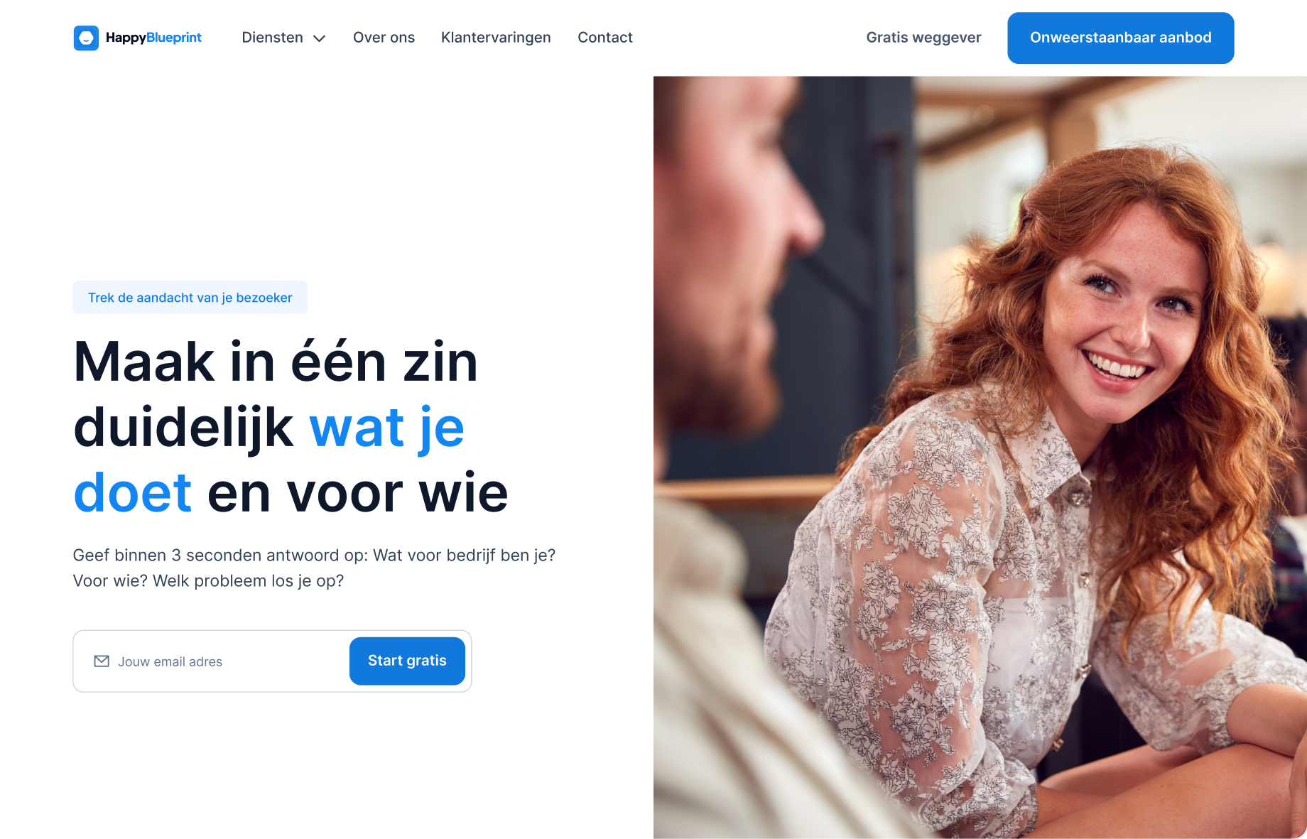 Begin je landingspagina met een sterke belofte. Dit is je kans om de aandacht van je bezoekers te trekken door duidelijk te maken wat je aanbiedt en voor wie het bedoeld is. Gebruik een krachtige kopregel die het gewenste resultaat beschrijft en een subkopregel die eventuele twijfels wegneemt.