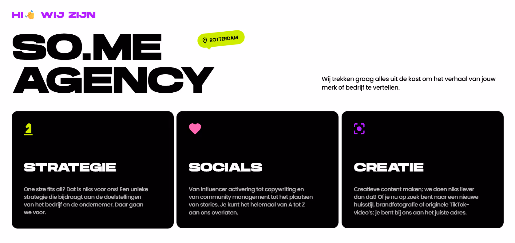 Een goede positionering-sectie bestaat uit meerdere elementen, kijk wat er bij jouw website past en maak een connectie met een potentiele klant.