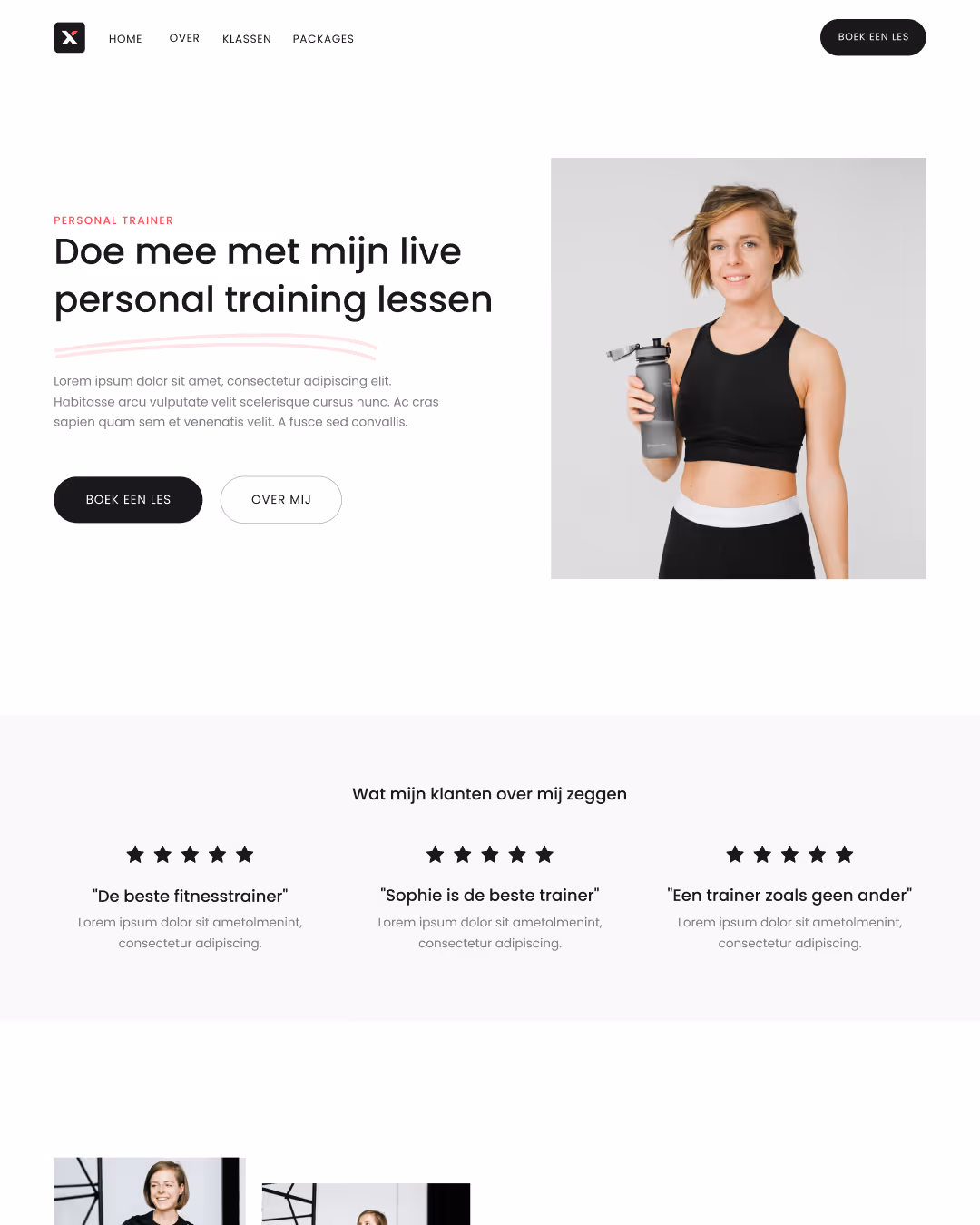 Energiek website template voor personal trainers die meer klanten willen aantrekken.