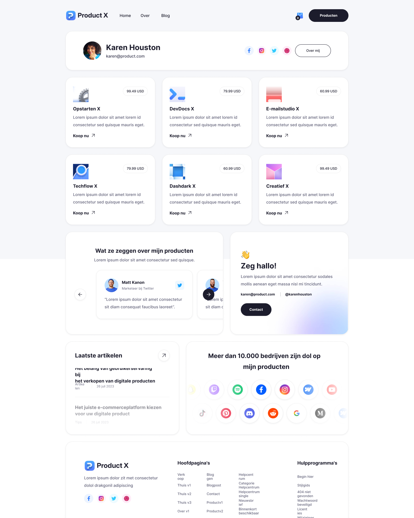 Strakke website template voor makers die hun digitale producten en diensten online willen aanbieden.