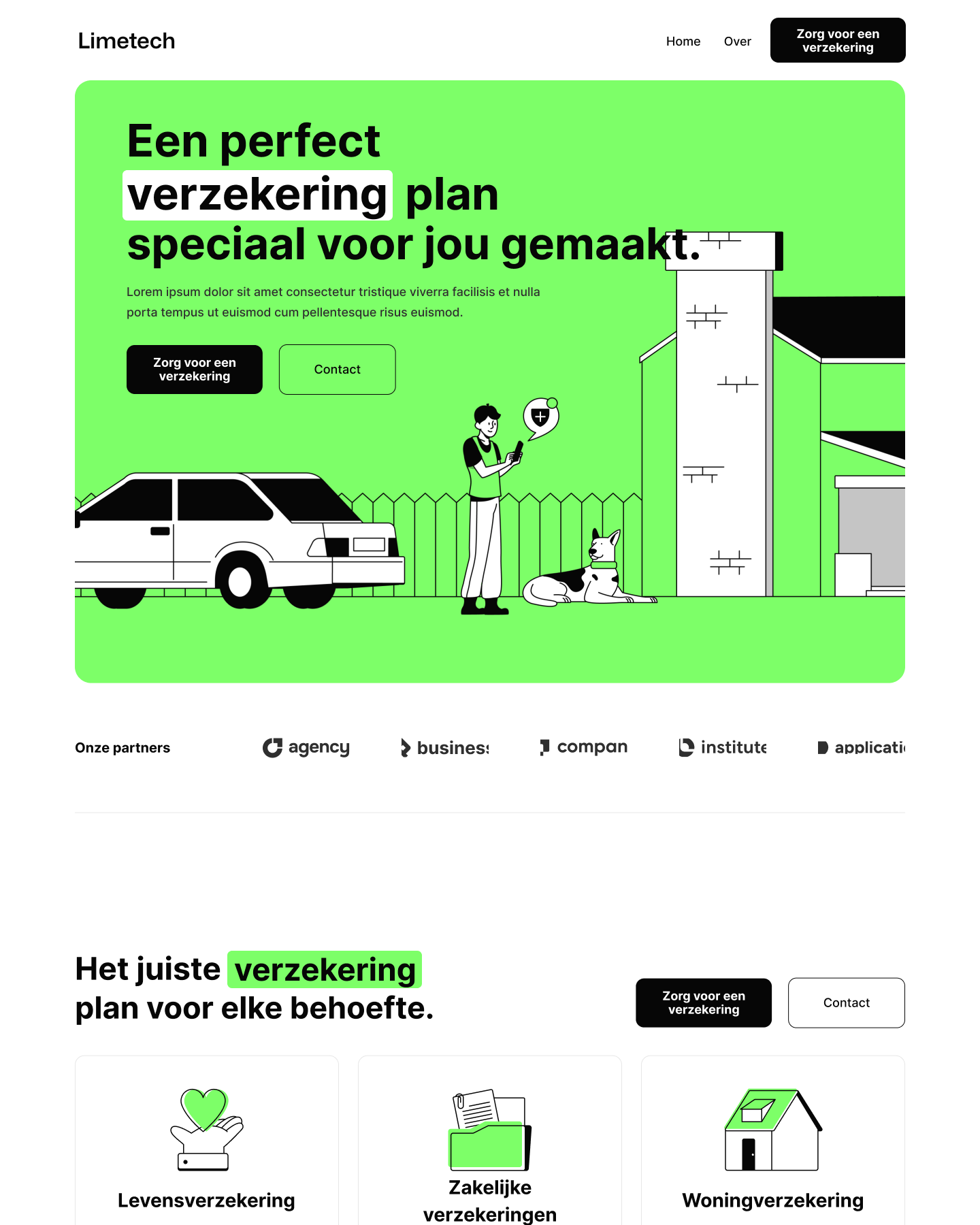 Professionele website template voor verzekeringsbedrijven die hun polissen, diensten en advies duidelijk willen presenteren.